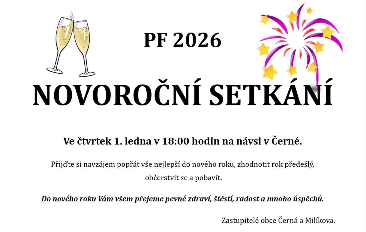 Ve čtvrtek 1. ledna v 18:00 hodin na návsi v Černé.